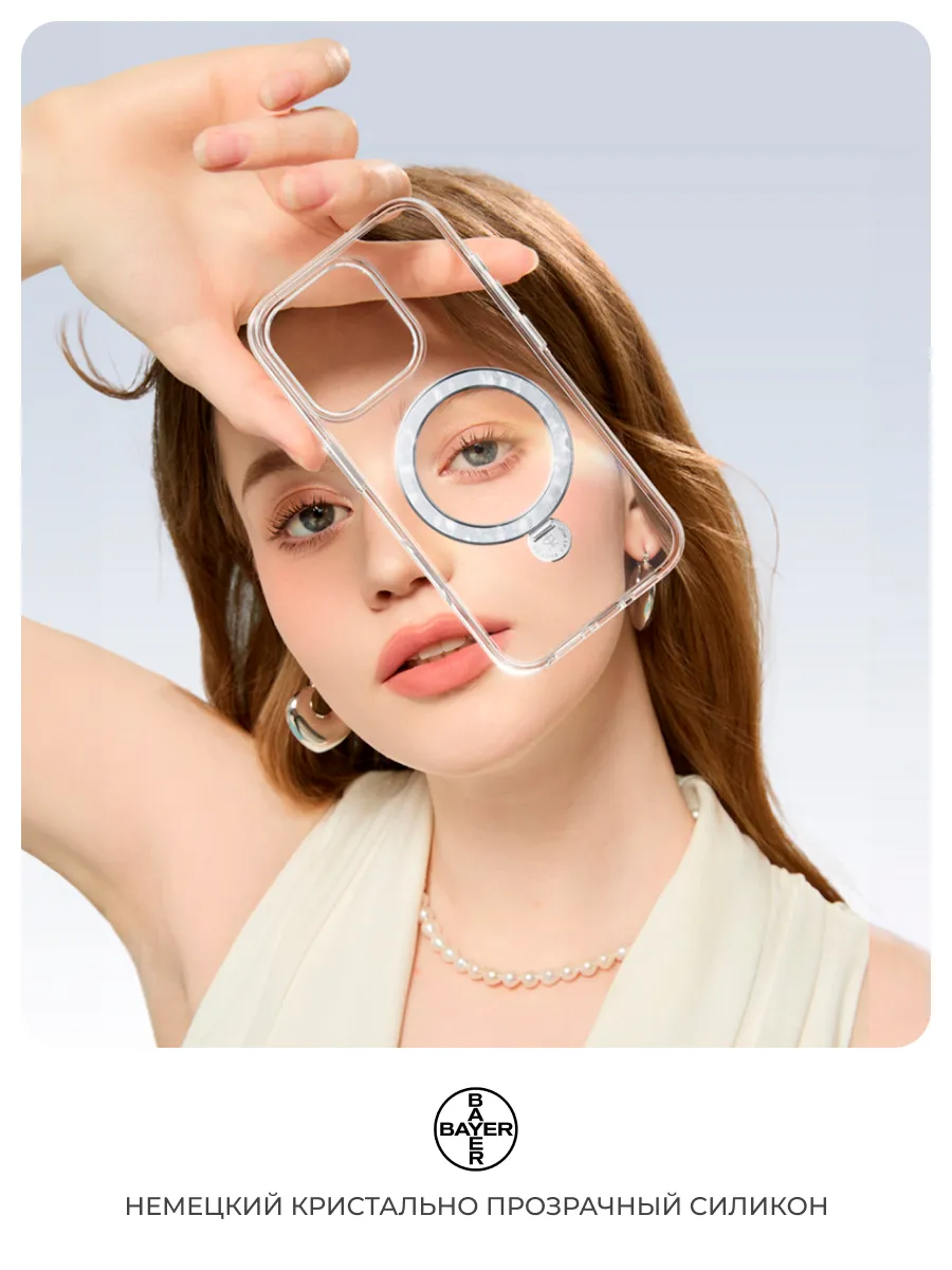 - функциональный MagSafe позволяет быстро заряжать смартфон с помощью беспроводной зарядки или внешнего пауербанка, крепко и плотно соединяется с бумажниками, автомобильными зарядками и настольными держателями
