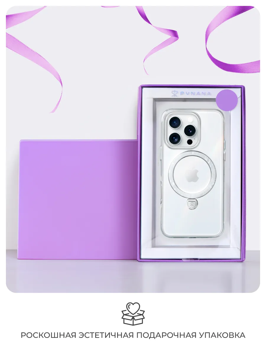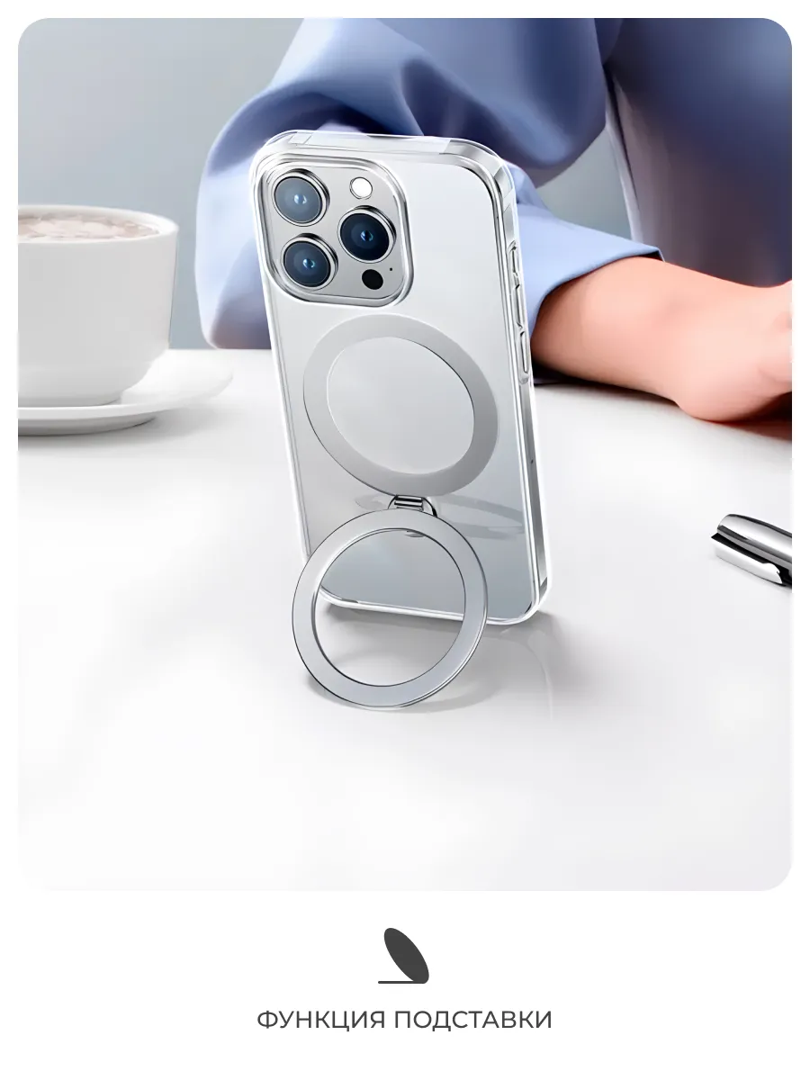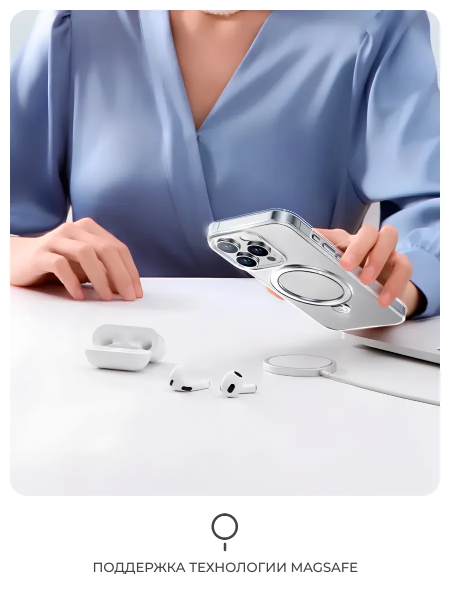 - Кольцо MagSafe не только сказочно красиво, но и функционально: позволяет быстро заряжать смартфон с помощью беспроводной зарядки или внешнего пауербанка, не привязывая вас к розетке; располагать смартфон на столе в вертикальном или горизонтальном положении; изящно фиксировать телефон в ладони, делая уверенным печатание одной рукой и облегчая повседневное использование