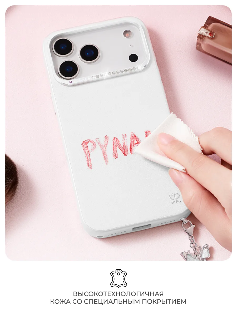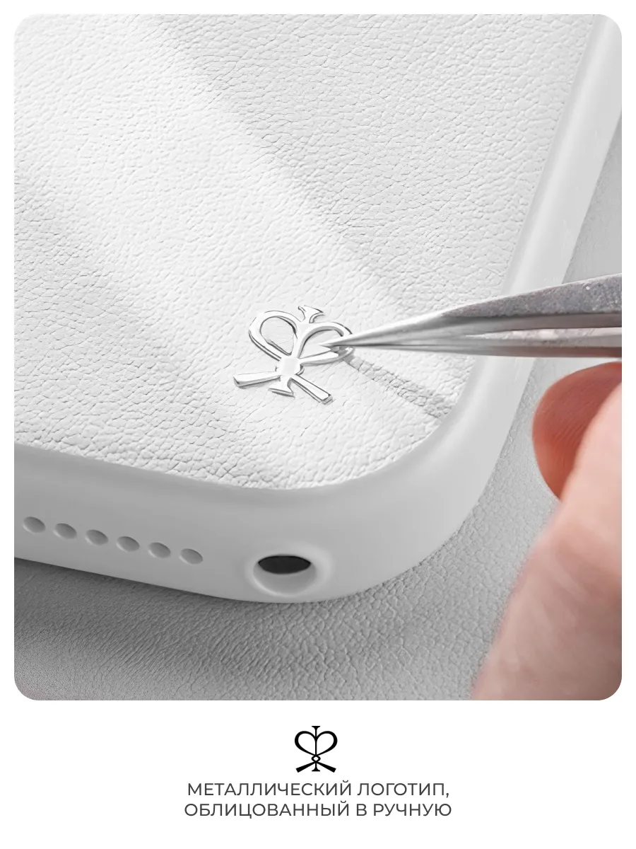 Верхняя часть корпуса выполнена из высокотехнологичной кожи нового поколения — мягкой, прочной и устойчивой к износу. Внутри — воздушная микрофибра с системой вентиляции и отвода тепла, бережно защищающая смартфон от перегрева и царапин. Снаружи — жидкое нанопокрытие, предотвращающее появление отпечатков, пыли и следов жира, сохраняя чехол безупречно чистым.
