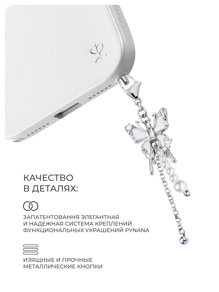 Коллекция Starry Series для iPhone 17 Pro Max — это история о свете, превращённом в ювелирное украшение. В обновлённой версии чехла теперь есть изящный брелок в форме бабочки — символ лёгкости, вдохновения и женственности. Он добавляет образу воздушность и делает аксессуар особенным.