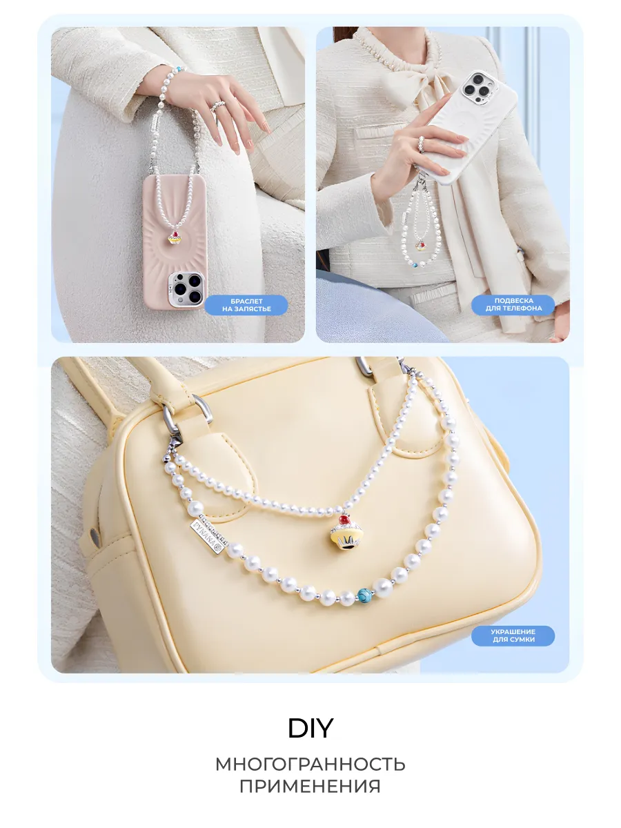 Цепочка универсальна: её можно носить как украшение для телефона, браслет, колье или аксессуар для сумки. Она гармонично сочетается с любыми образами, добавляя игривость и французский акцент в ваш повседневный стиль.