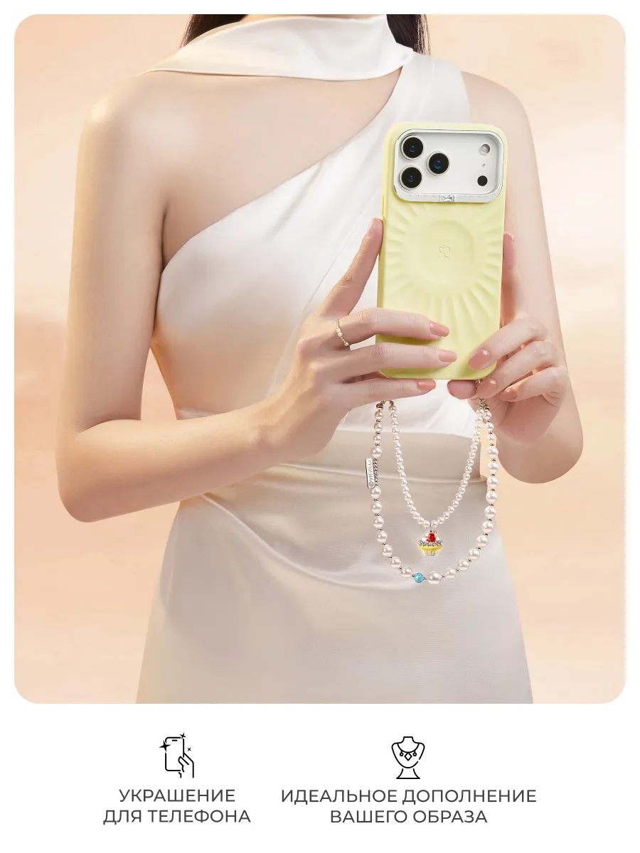 Цепочка Pynana Cherry Bubble — это история о лёгкости, вдохновлённая атмосферой французских кондитерских. Дизайнеры бренда передали настроение беззаботного детства и сладких мгновений, когда витрины сияют разноцветными пирожными, а мир кажется наполненным светом и радостью. Украшение создано, чтобы возвращать это чувство — каждый раз, когда вы берёте смартфон в руки.