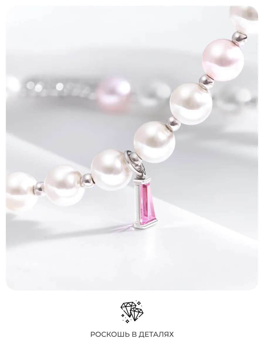 Струящиеся переливы жемчужного сияния и сверкающий цирконий фантазийной утонченной огранки демонстрируют неповторимое очарование при малейшей игре света и тени.