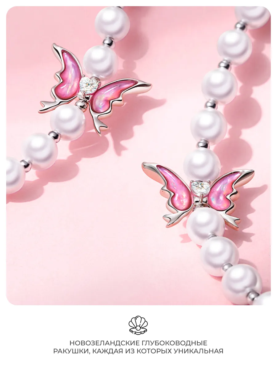—в составе этой цепочки новозеландские глубоководные ракушки, каждая из которых уникальна и неповторима, кубический цирконий и бусины с натуральным перламутровым напылением